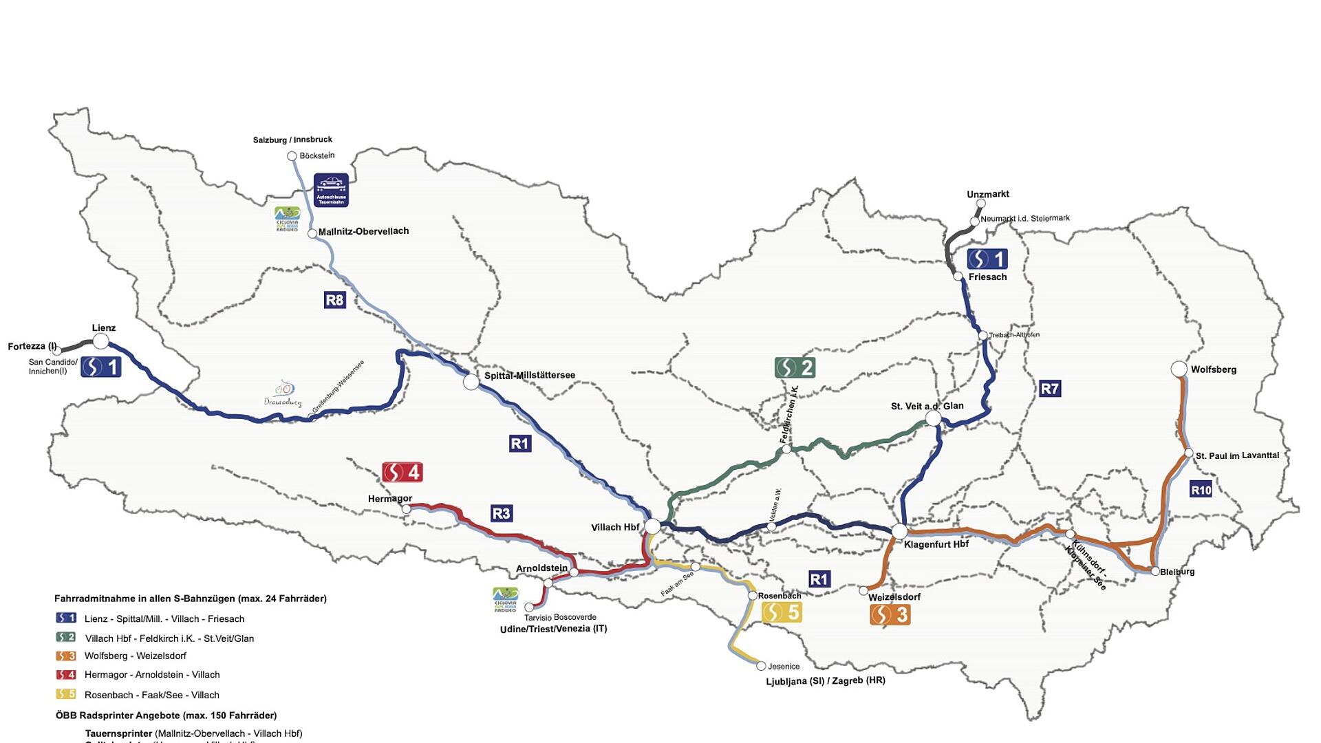 Für Gäste, die etwas länger die Radwege Kärntens erleben möchten, gibt es zahlreiche sehr gute Verbindungen aus den Nachbarbundesländern mit den neuen Interregiozügen, den Fernverkehrszügen verschiedenster Anbieter aus Österreich, Deutschland, Italien sowie Tschechien – ganz entspannt ohne Stau und Parkplatzsuche.